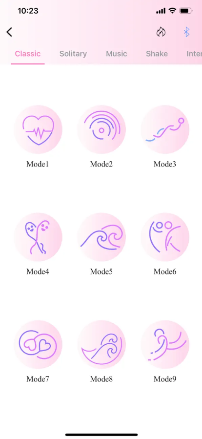 Classic, solo vibration, musical, shake modes and more, which enable you to feel different levels of vibration intensity.